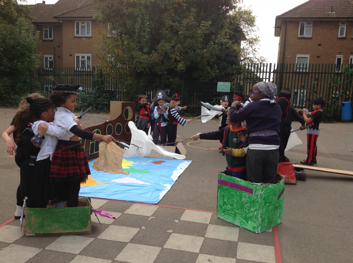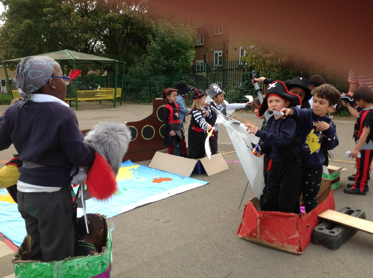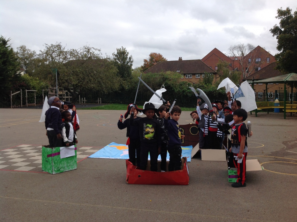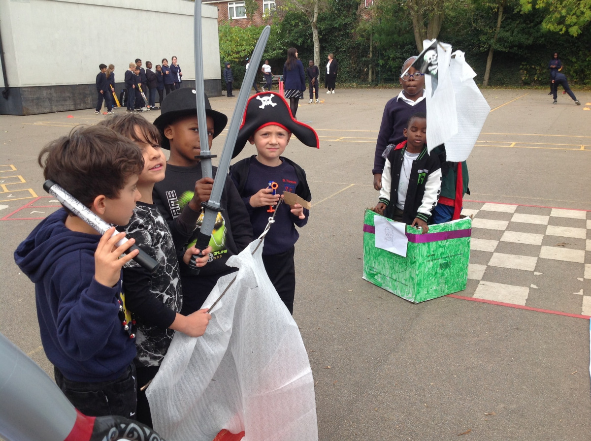 Year 2 had a great end to their topic ‘Land Ahoy’ with a Pirate Day! The children got the opportunity to make their very own pirate ships – thinking about the best suited materials before having a duel in the playground!